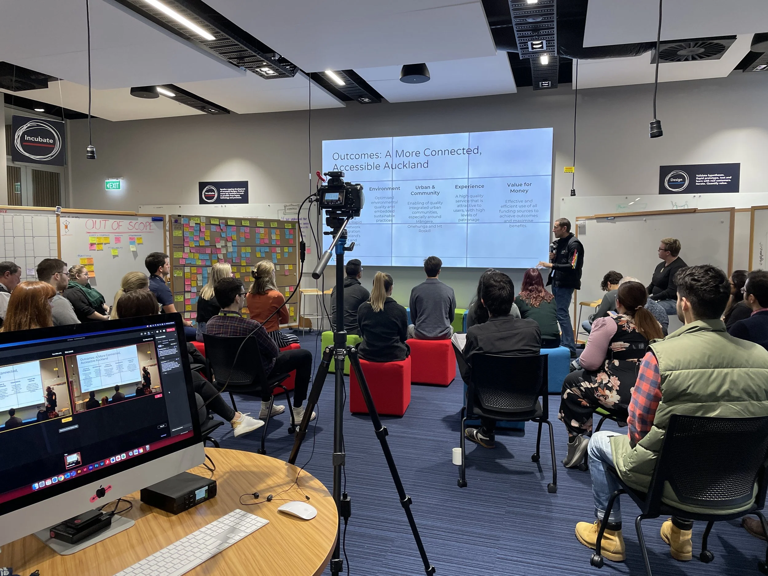 At Auckland Transport I was responsible for the implementation and management of org-wide live events. I worked closely with the CEO and internal comms team to develop and deliver a platform for senior executives to communicate with the organisation (2000 people) via live stream.